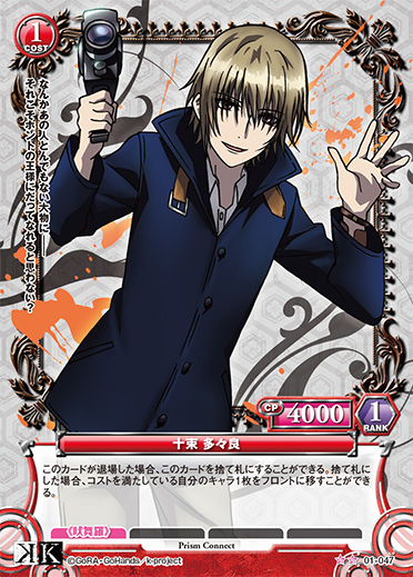 このカードが退場した場合、このカードを捨て札にすることができる。捨て札にした場合、コストを満たしている自分のキャラ1枚をフロントに移すことができる。